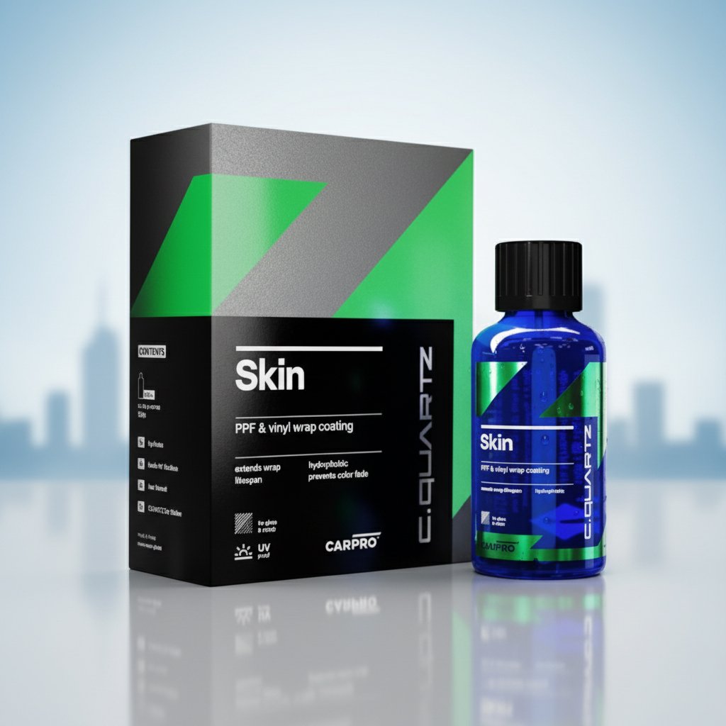The CarPro CQuartz SKIN (50ml Kit) is a specialized ceramic coating for vinyl wraps and PPF, offering superior UV resistance to prevent yellowing, fading, and degradation. It enhances surfaces with a satin-gloss finish, adds hydrophobic protection, and ensures easier maintenance for long-lasting durability.