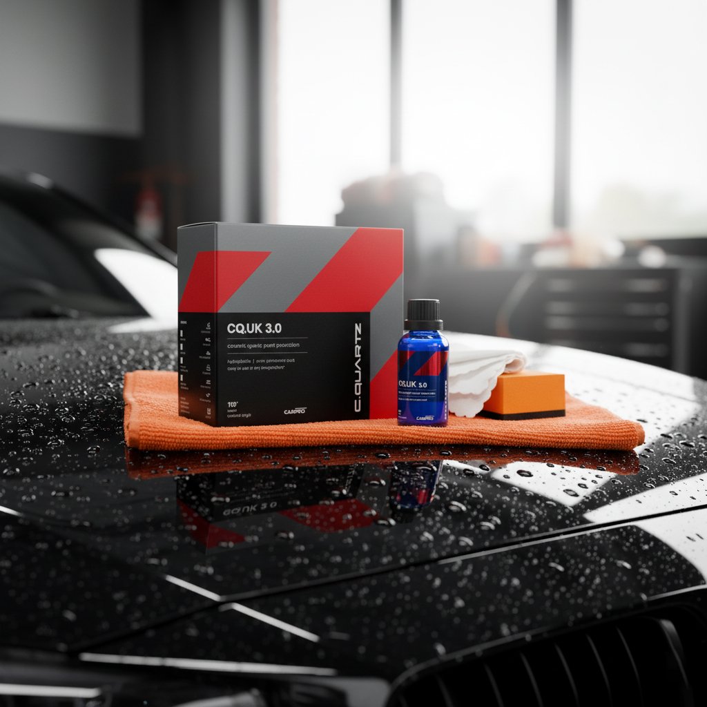 The CarPro CQuartz UK Edition 3.0 (50ml) is a high-solids ceramic coating with 70% SiO₂ purity, creating a glossy, glass-like shield that lasts up to 2+ years. Engineered for harsh environments, it delivers extreme hydrophobic performance and protects paint, wheels, and metal surfaces from UV rays, salt, and contaminants.