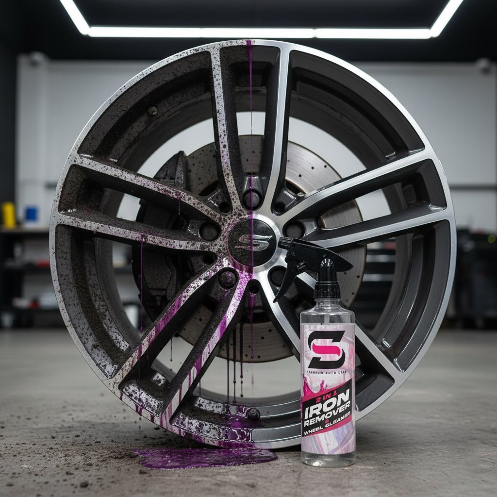 Iron Remover is a pH-balanced decontamination spray that safely dissolves embedded iron particles like brake dust and fallout. With a purple color-change reaction, it deep-cleans paint, wheels, and metal surfaces—perfect as a prep step before claying or ceramic coating.