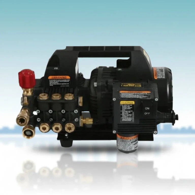 Heavy-Duty Triplex Pump: Direct drive pump with ceramic pistons and thermal relief valve.
