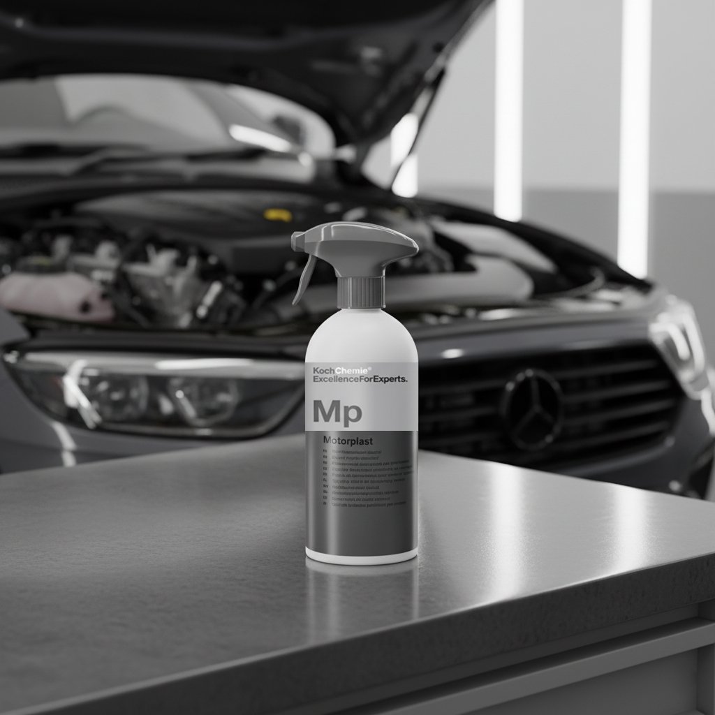 Motorplast is a naturally shiny, water-displacing engine conserver designed for engines, housing parts, rubber hoses, and power units in vehicles. It restores a like-new finish while forming a dry, elastic protective film that resists dirt, moisture, corrosion, and environmental wear. Suitable for use on both wet and dry surfaces, with temperature resistance up to 250°C. Approved by Daimler.