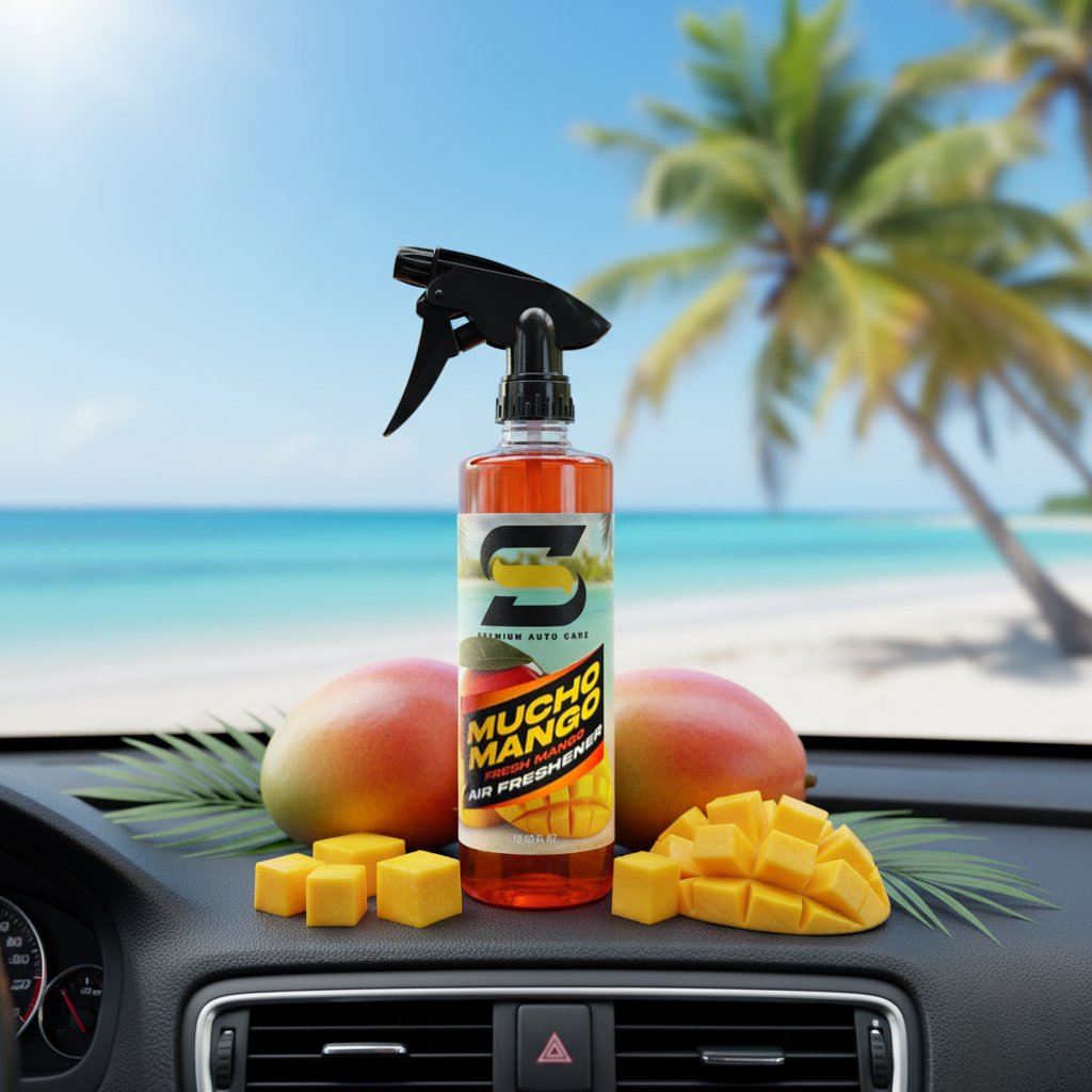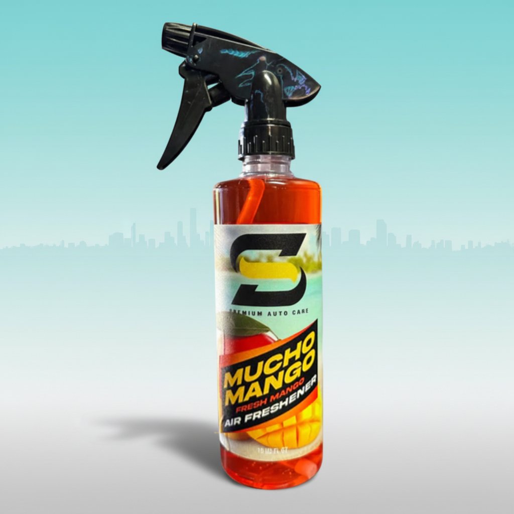 The 16oz Mucho Mango air freshener is perfect for keeping my car smelling tropical and fresh! The mango scent is bold but not overpowering, and it really neutralizes any unwanted odors. Using it through the cabin or A/C is super easy, and the freshness lasts for a long time.