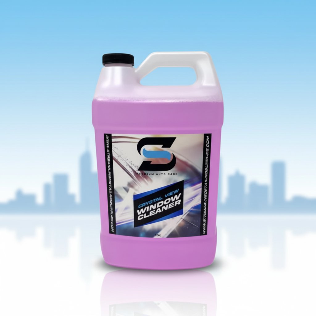 Achieve crystal-clear results with Streamline Clear View Window Cleaner—a high-performance formula designed to clean auto glass, mirrors, and polished surfaces without leaving streaks or haze. This ammonia-free solution removes tough dirt, oily grime, smoke film, and fingerprints with ease, making it ideal for professional auto detailers and everyday use.